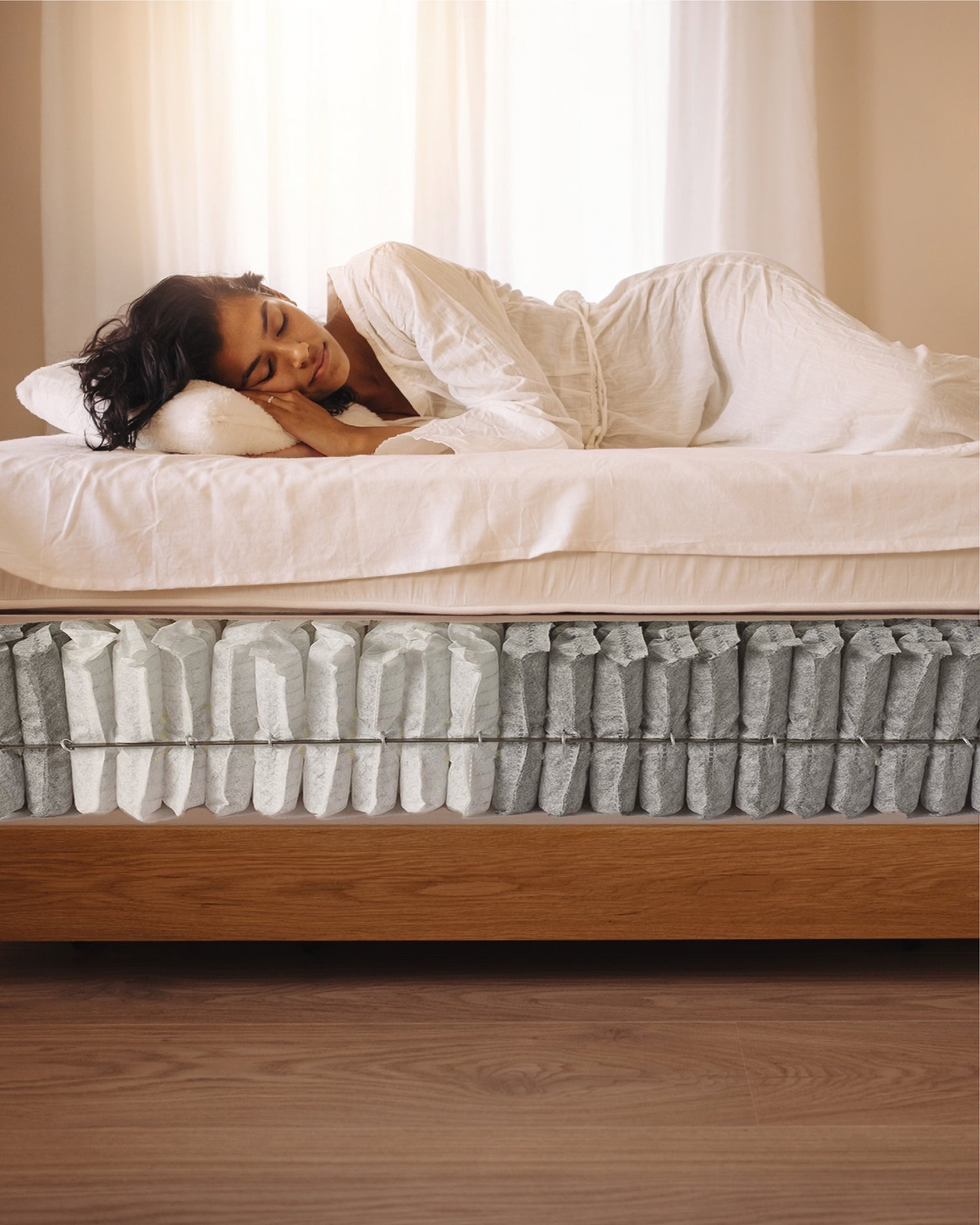 Le molle insacchettate lavorano in modo indipendente l’una dall’altra, adattandosi in tempo reale ai movimenti del corpo senza trasferire sollecitazioni alle zone vicine.
